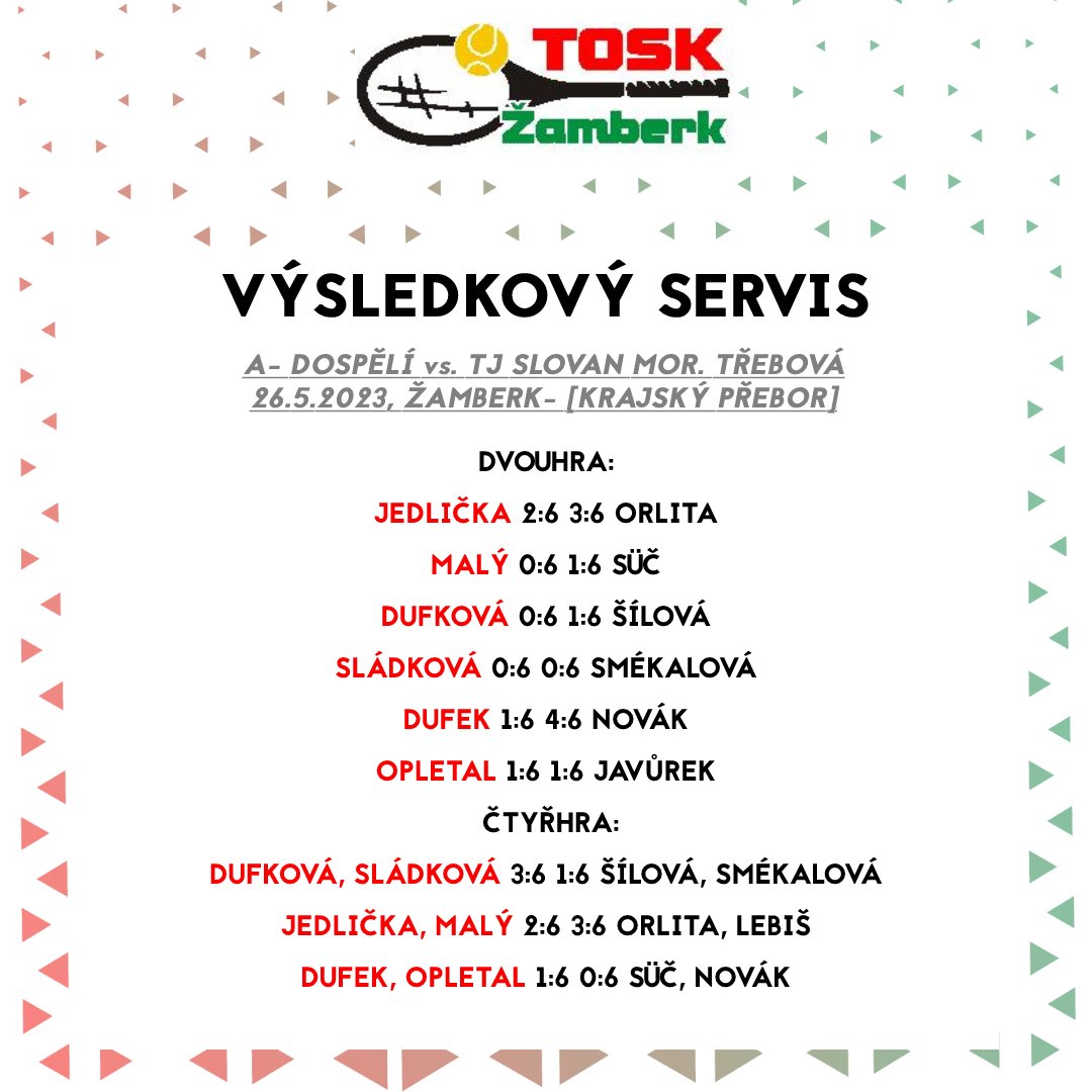 První bodovou ztrátu v soutěži (Pardubický krajský přebor) utrpělo o víkendu A družstvo dospělých. V přímém souboji o čelo tabulky podle předpokladů nestačilo na dosud suverénní Slovan Moravská Třebová, v jednotlivých utkáních bylo tentokrát rádo za střádání jednotlivých gamů. „Soupeř si celé utkání zkušeně pohlídal, sympatický výkon předvedl Pavel Dufek, který nebyl daleko od zisku setu,“ uvedl hrající kapitán Dominik Jedlička. B družstvo si dojelo pro snadnou výhru do Vysokého Mýta a v Pardubické krajské soutěži se nadále drží v popředí. „Vcelku pohodové a jednoznačné vítězství, především v mužské části týmu,“ prohlásil hrající kapitán týmu Jaromír Malý.