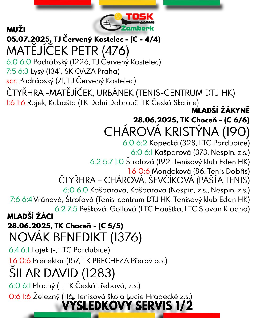 Letní prázdniny odstartovaly a s nimi i sezóna turnajů jednotlivců. První dva prázdninové víkendy přinesly řadu skvělých výsledků našich hráčů – hned několikrát jsme byli vidět na stupních vítězů! Kristýna Chárová – 1. a 2. místo, Petr Matějíček – 3. místo, Valérie Adamcová – 3. místo. Gratulujeme všem medailistům a těšíme se na další úspěchy v průběhu léta. Na výsledky z uplynulého víkendu se můžete těšit během následujících dní.