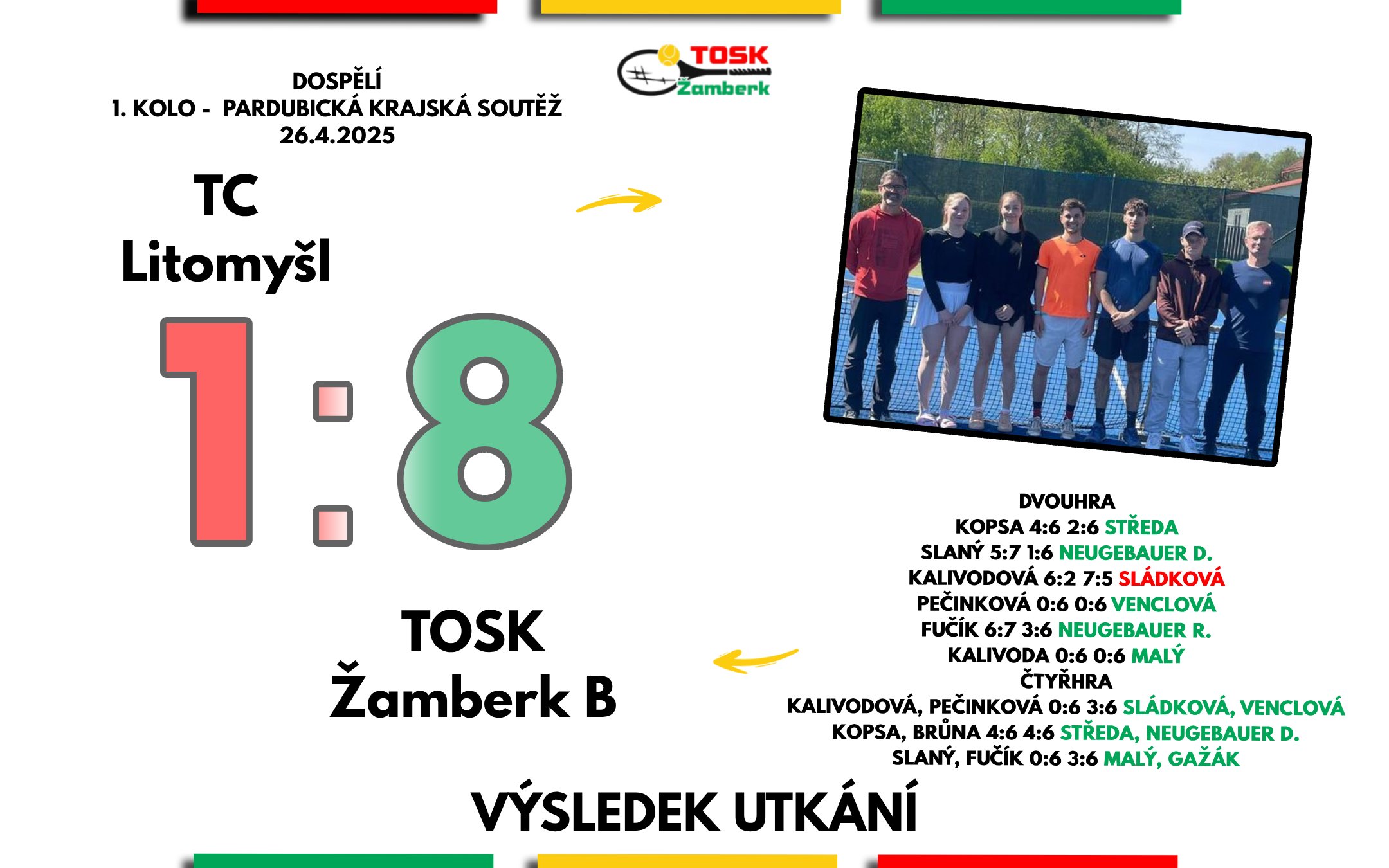 TOSK Žamberk A porazil loňského vítěze soutěže LTC Pardubice C 7:2 v krajském přeboru, TOSK Žamberk B si zajistil vítězství nad TC Litomyšl už po dvouhrách a nakonec zvítězil jasně 8:1 v krajské soutěži.