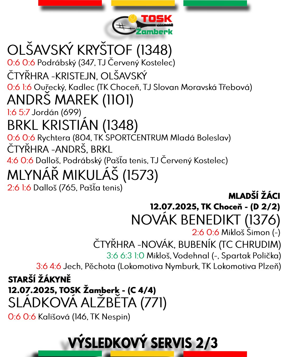 Čtyři hráčky TOSK se představily na domácím turnaji v Žamberku. Tři z nich se probojovaly do semifinále – Kristýna Chárová a Verča Adamcová v něm po zajímavých zápasech skončily, mimo jiné i kvůli Verčině stále nejistému zdravotnímu stavu. Její mladší sestra Valérie postoupila až do finále, kde podlehla první nasazené hráčce a obsadila tak výborné druhé místo. Pochvala patří také Benovi Novákovi, který si v Hradci Králové zahrál semifinále čtyřhry.