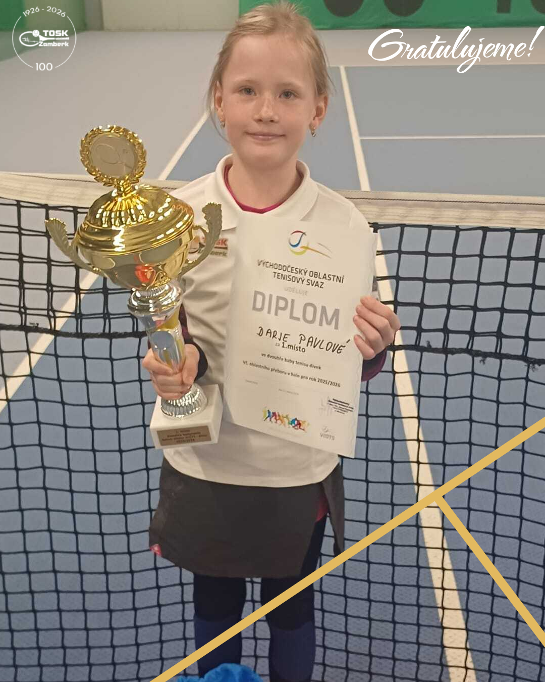 Jubilejní sezona, v níž TOSK Žamberk slaví 100 let od svého založení, začala pro klub tím nejlepším možným způsobem. O skvělý úvodní úspěch se postarala Darja Pavlová, která triumfovala na halovém oblastním přeboru v kategorii babytenis. V sobotu 31. ledna nenašla ve Vysokém Mýtě na atypickém povrchu (koberec) ani jednu přemožitelku. Turnajem prošla naprosto suverénně, když zvítězila ve všech pěti utkáních a dosáhla impozantního skóre gamů 20:3.