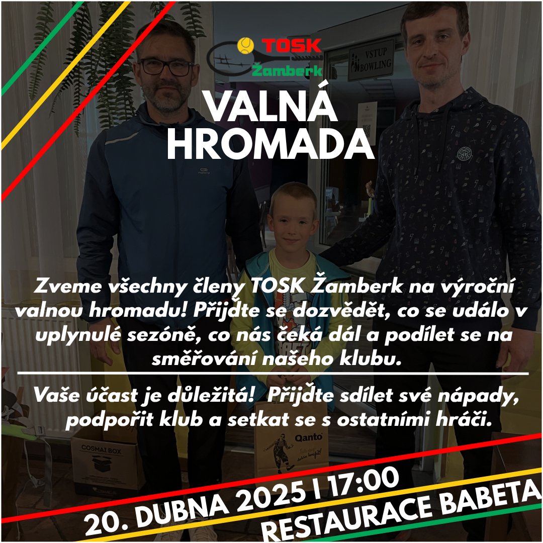 V neděli 20. dubna od 17 hod. proběhne v restauraci Babeta výroční valná hromada TOSK. Na programu bude například hodnocení loňské sezony po sportovní, technické a finanční stránce nebo vyhodnocení nejúspěšnějších jednotlivců v roce 2024.