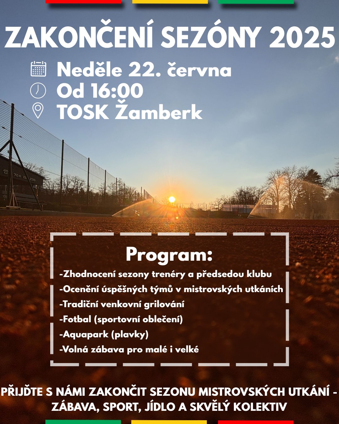 Vážení členové a příznivci klubu, srdečně vás zveme na tradiční zakončení sezóny, které se uskuteční v neděli 22. června od 16:00 v areálu TOSK Žamberk.