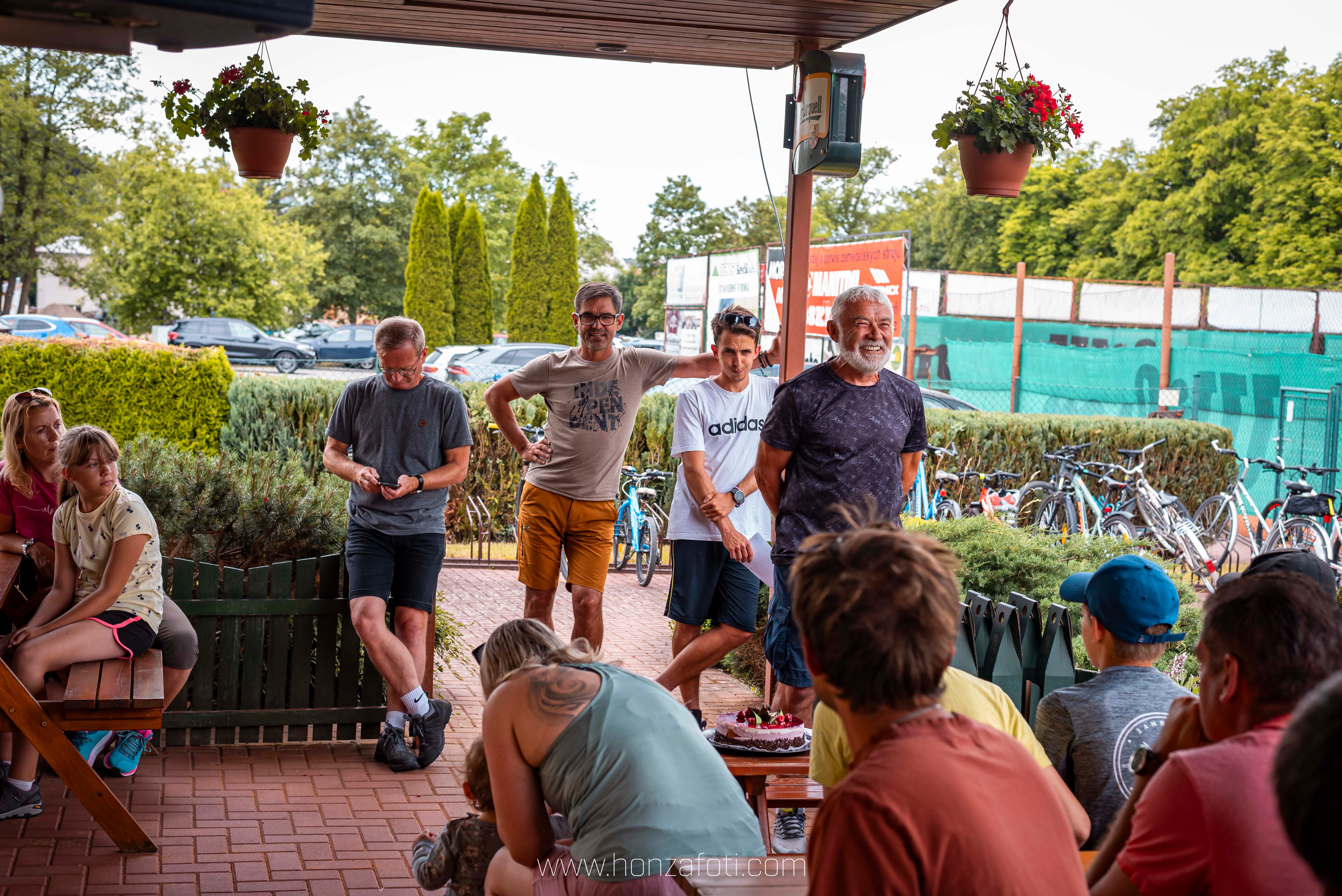 V neděli (25.6.) jsme se společně rozloučili s letošní sezonou soutěží smíšených družstev. Na úvod před přítomné předstoupil končící předseda TOSK Stanislav Tajbr. „Jsem rád, že jsme se tu sešli v tak hojném počtu. Jak už bylo avizováno, po dvaceti letech jsem se rozhodl, že už dále nebudu pokračovat ve funkci předsedy klubu, nahradí mě Jakub Kulhánek. Zůstávám členem výboru a budu sem samozřejmě nadále docházet a podílet se na činnosti klubu,“ pronesl za hlasitého potlesku Stanislav Tajbr. O výsledcích jednotlivých týmů, kterých TOSK od minitenisu až po dospělé nasadil celkem 11, informovali sportovní manažer Dominik Jedlička a šéftrenér Radek Neugebauer. Dort za nejúspěšnější tým převzali členové A družstva mladších žáků, kteří bojovali až do posledního kola o postup do nejvyšší východočeské soutěže v této věkové kategorii. Následovalo grilování, fotbalový zápas „všech proti všem“, hromadná návštěva koupaliště a volná zábava.