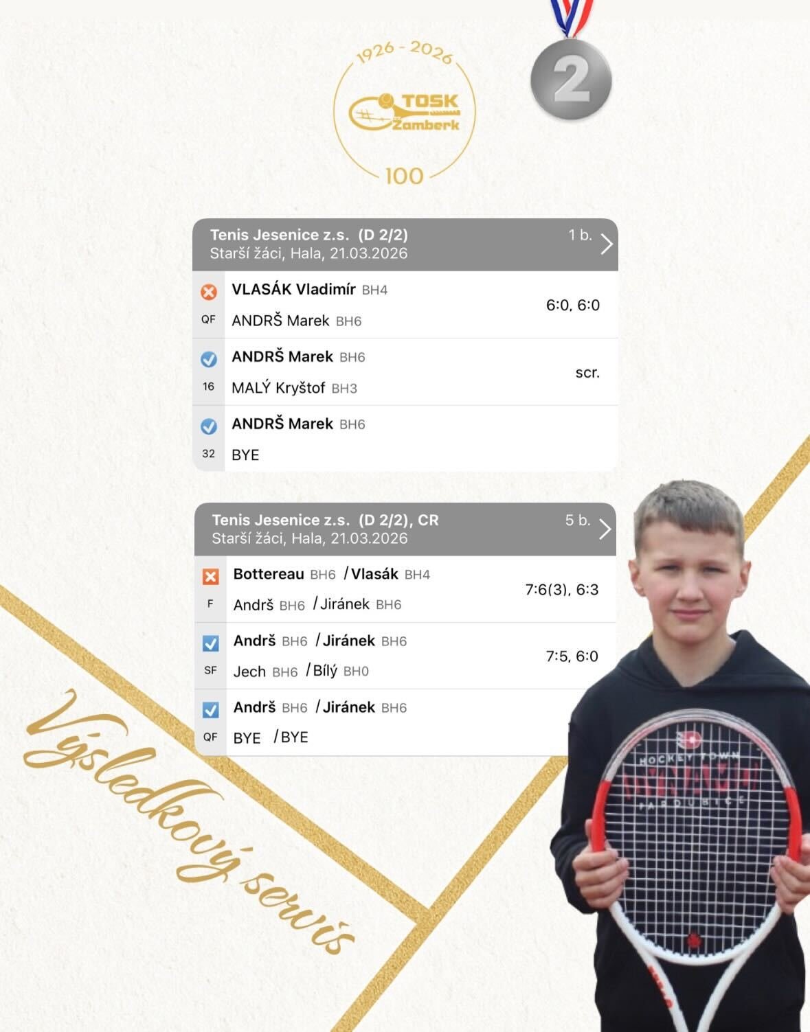 Halová sezóna je u konce a naši hráči nyní upínají pozornost k mistrovským utkáním, která odstartují už za tři týdny. Výraznou stopu za zimní částí zanechala Valérie Adamcová, jež na turnaji starších žákyň vybojovala cenné medailové umístění ve čtyřhře. Úspěšný závěr podtrhl také Marek Andrš, který si zahrál finále čtyřhry a rozšířil tak sbírku úspěchů našich hráčů.