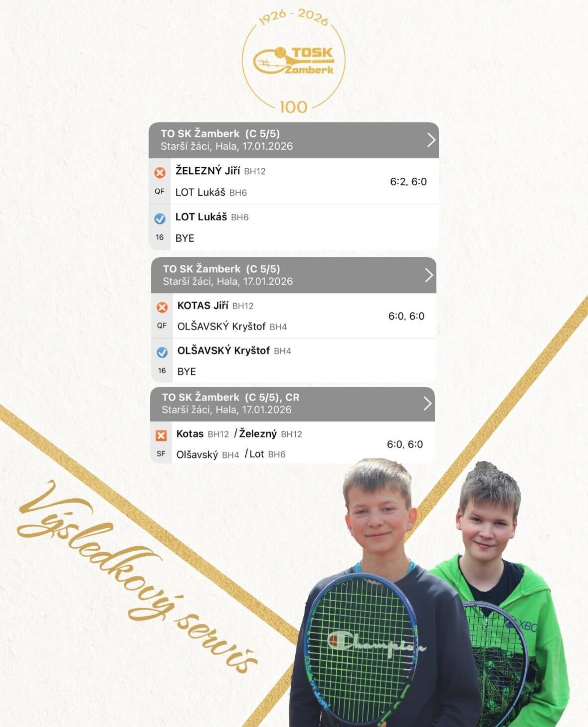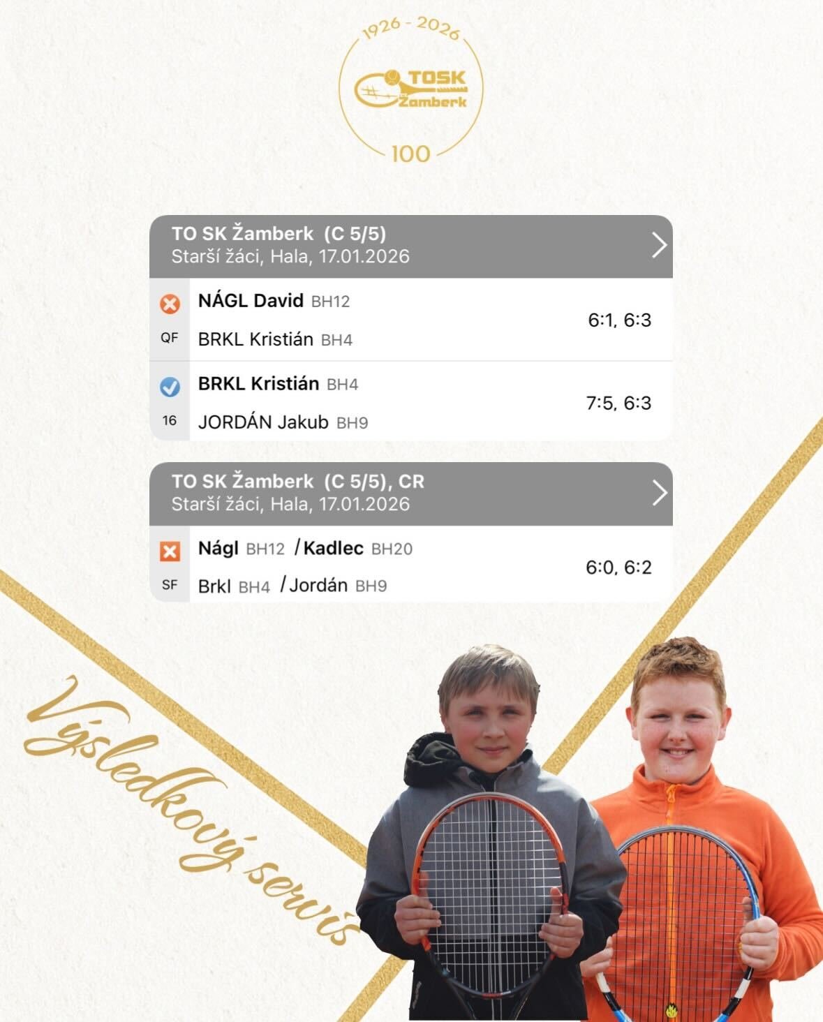 Na domácím turnaji starších žáků zasáhlo do bojů celkem pět hráčů TOSK Žamberk. Zajímavou a vyrovnanou bitvu kamarádů svedli Kristián Brkl a Jakub Jordán, ve které byl nakonec o něco šťastnější Kristián.