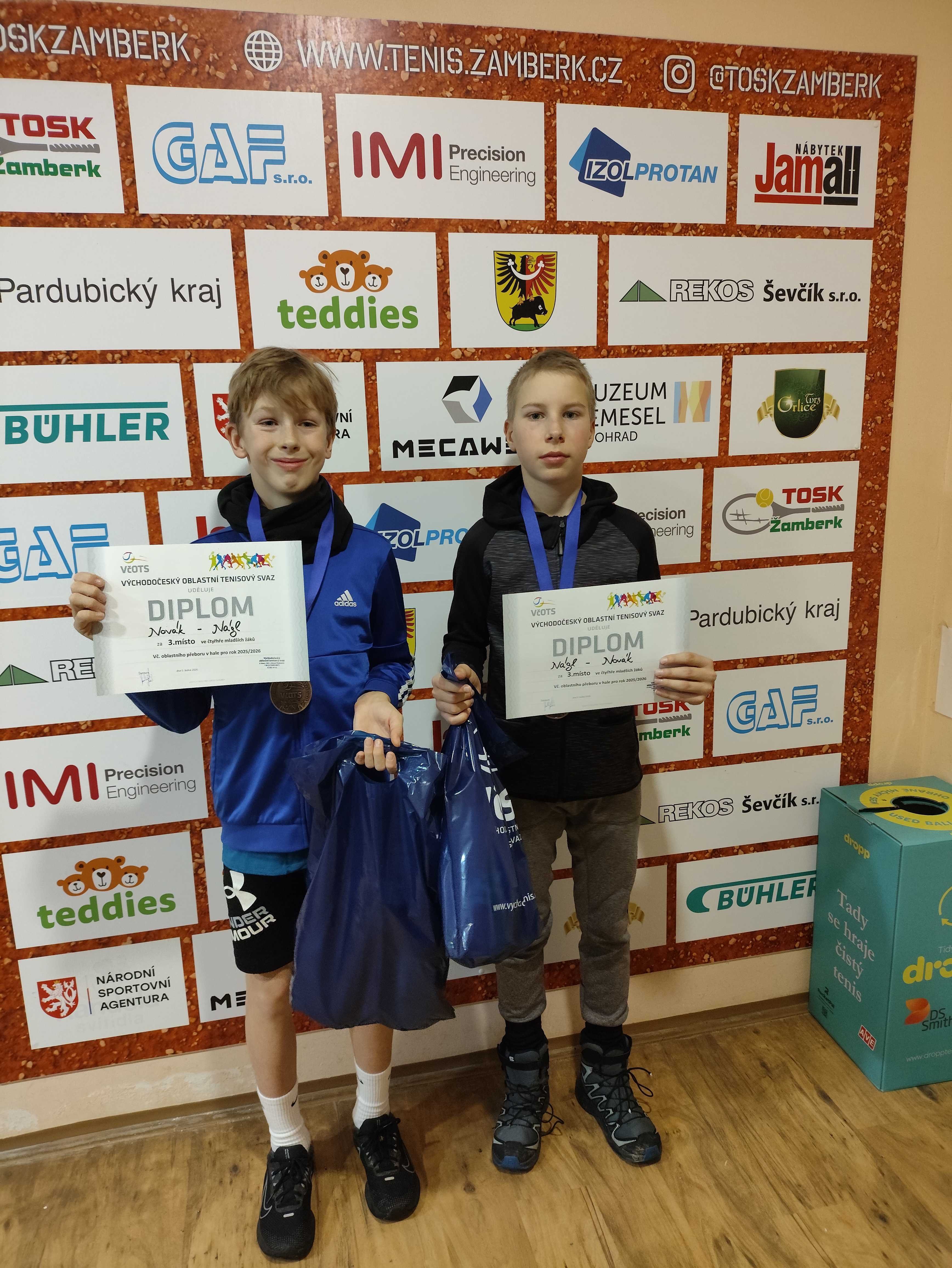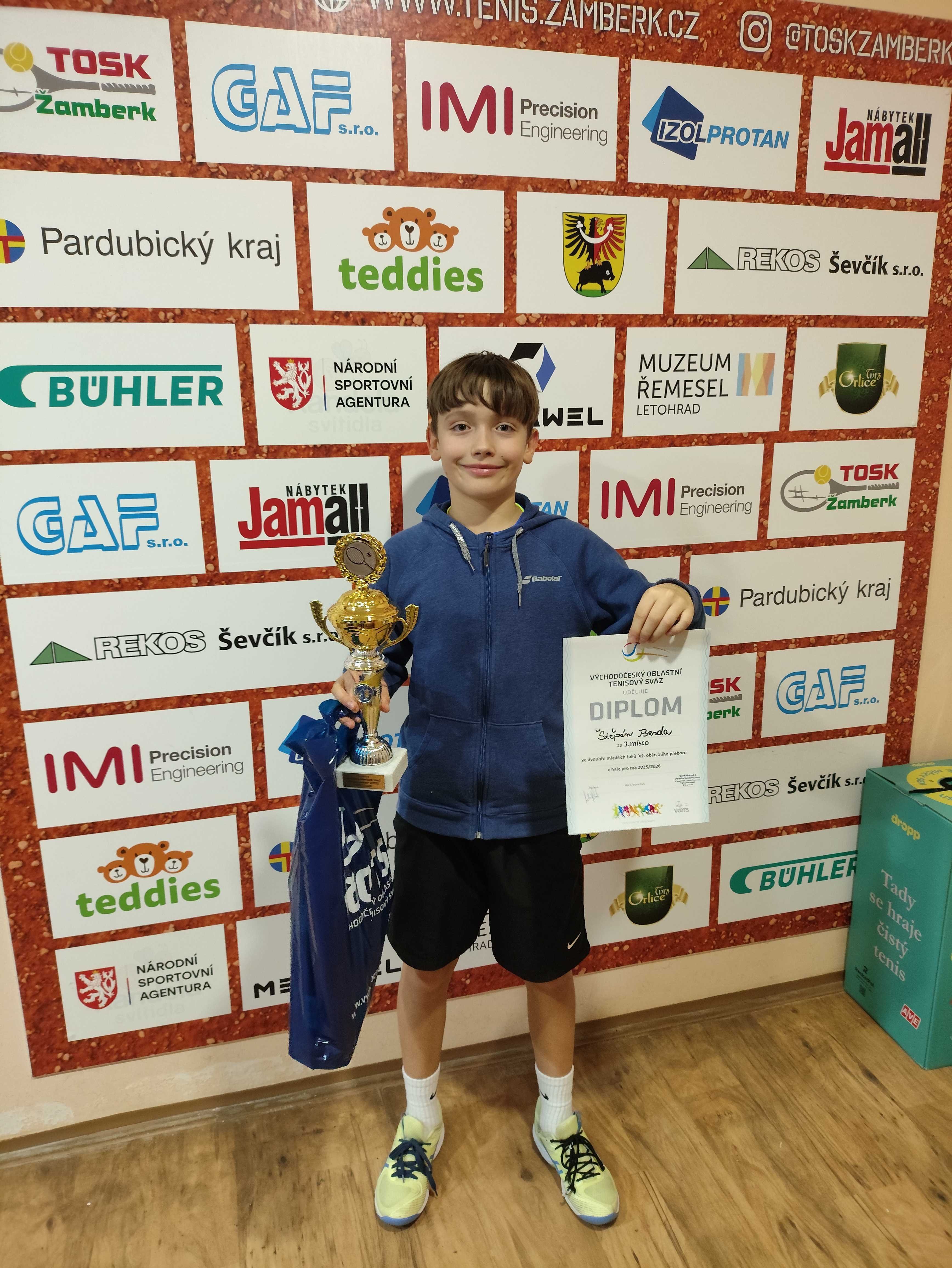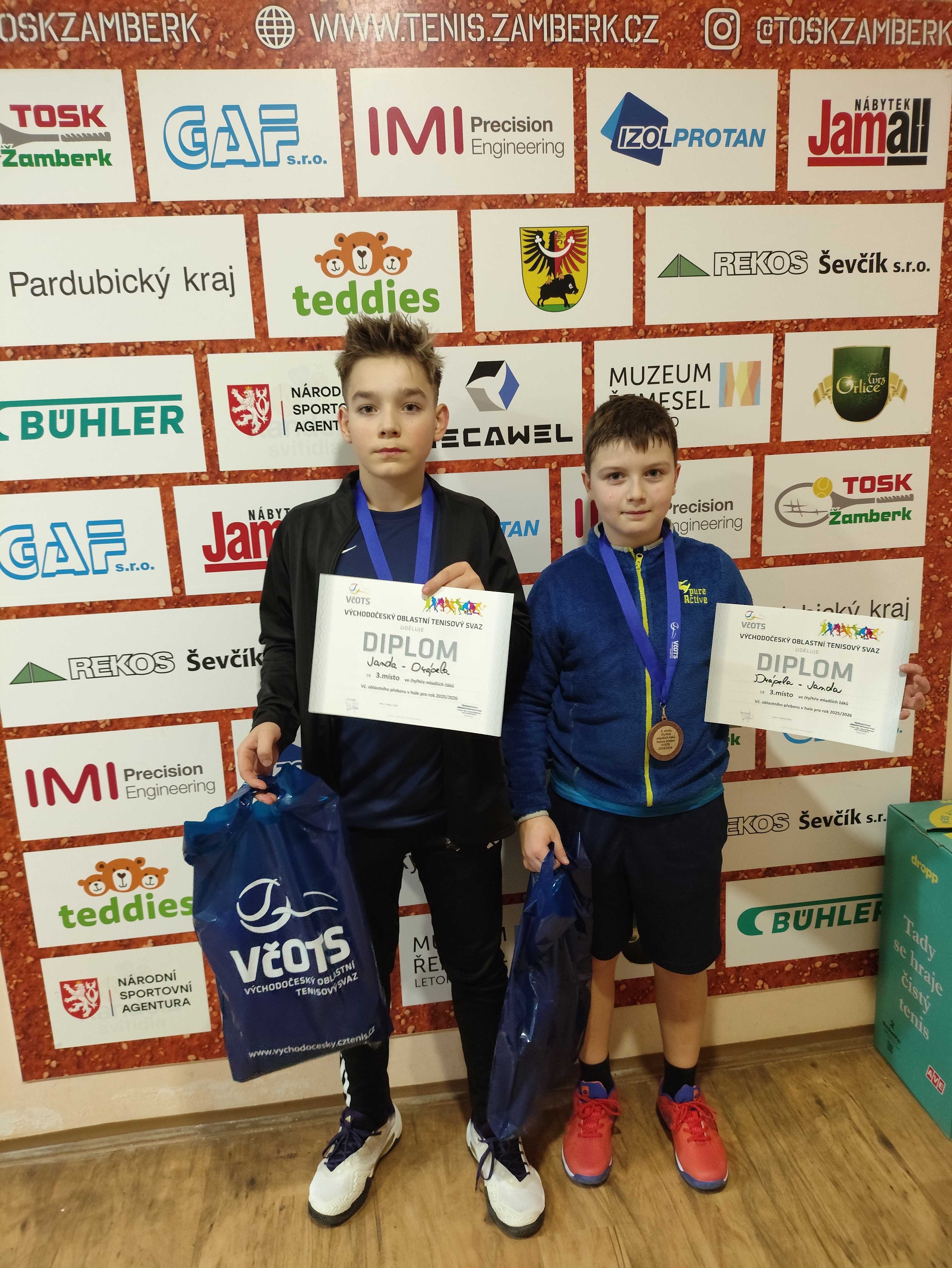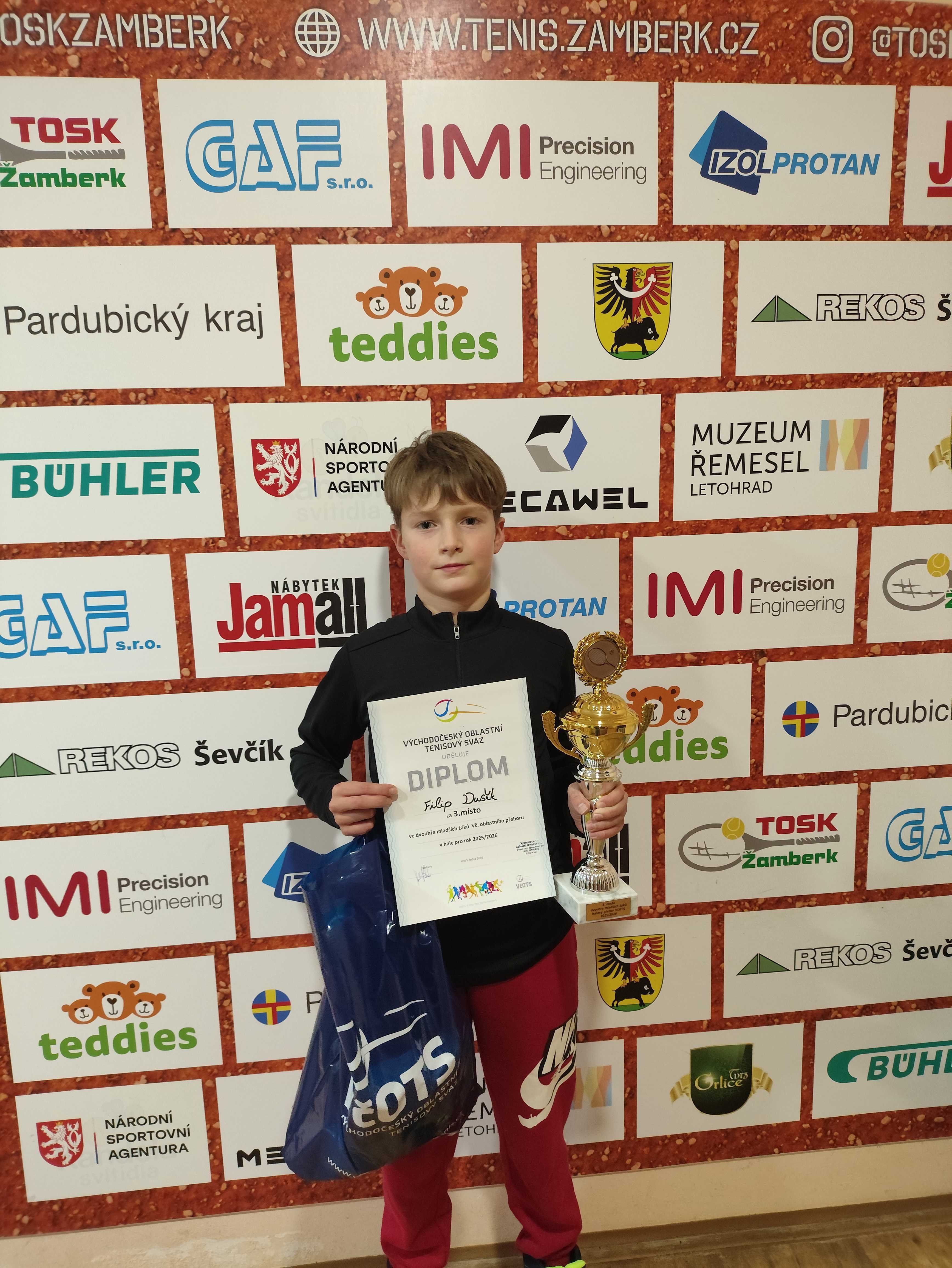 Uplynulý víkend patřily kurty v Žamberku Východočeským přeborům mladších žáků. Ve hře byla nejen prestižní trofej, ale pro celkového vítěze také přímá kvalifikace na MČR. Z celkového počtu 30 účastníků potvrdil roli favorita první nasazený Jakub Pražák (TK Hlinsko), který ovládl turnaj hned dvakrát – radoval se z titulu ve dvouhře a společně se Štěpánem Bendou (TK SB Světlá nad Sázavou) triumfoval také ve čtyřhře. Domácí TOSK reprezentoval David Šilar, kterému se i přes bojovný výkon nepodařilo postoupit přes úvodní kolo.