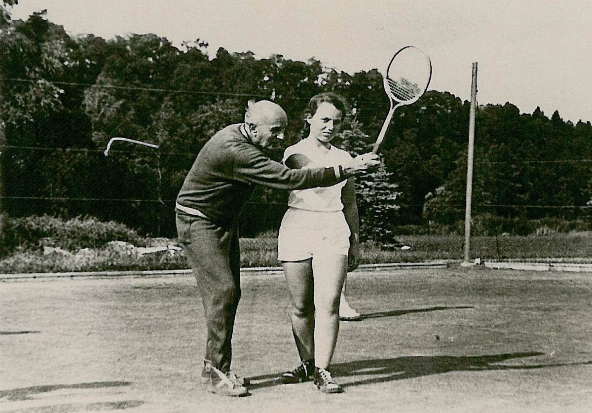 1957 - známý odborník a autor tenisové literatury vedl v Žamberku týdenní kurs. Na snímku s J.Žilkovou.