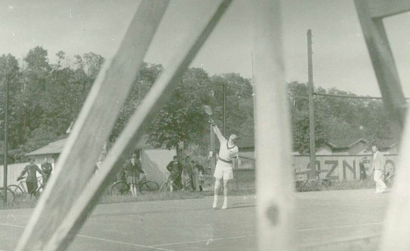 Jediná dochovaná poválečná fotografie – při čtyřhře jsou zachyceni K. Pospíšil a Z. Jaška (vpravo).