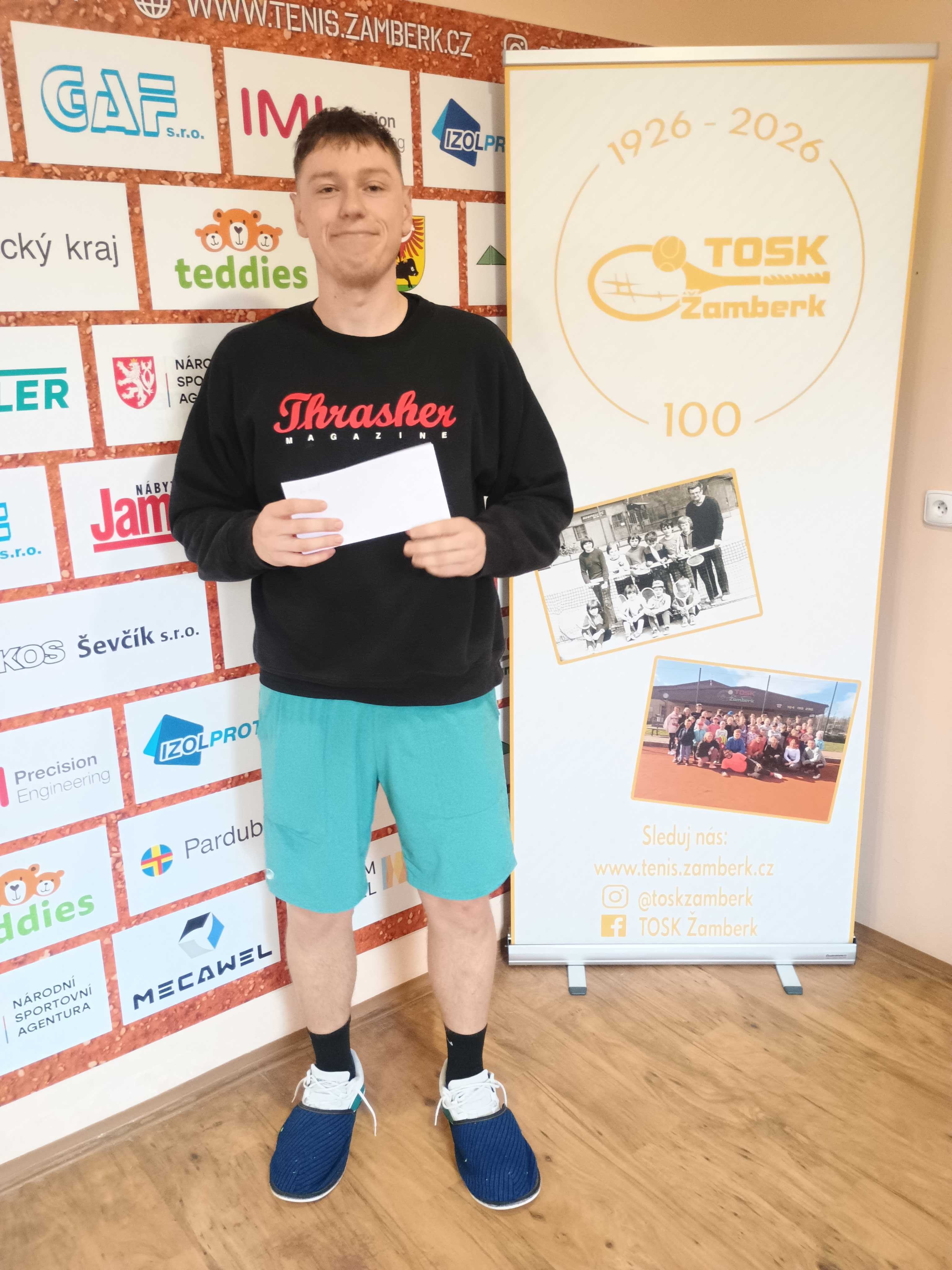 Sedmnáctiletý Martin Šmíd (122. místo celostátního žebříčku, TK Pernštýn 1897 Pardubice) vybojoval v Žamberku (21.-22.3.) svůj druhý titul v mužské kategorii během právě skončené zimní sezony. Z pozice pátého nasazeného hráče prošel turnajem suverénně, když na cestě do finále neztratil ani set. Finálové utkání proti Danielu Knoflíčkovi (LTC Houštka) se po vzájemné dohodě neuskutečnilo. Šmíd však potvrdil svou formu i ve čtyřhře, kterou opanoval po boku Bohumila Bezdíčka z DTK Skuteč.