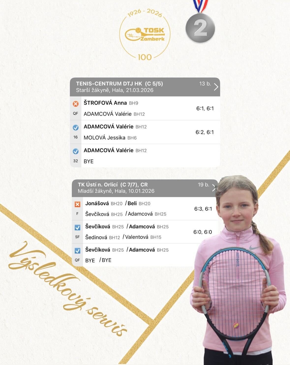 Halová sezóna je u konce a naši hráči nyní upínají pozornost k mistrovským utkáním, která odstartují už za tři týdny. Výraznou stopu za zimní částí zanechala Valérie Adamcová, jež na turnaji starších žákyň vybojovala cenné medailové umístění ve čtyřhře. Úspěšný závěr podtrhl také Marek Andrš, který si zahrál finále čtyřhry a rozšířil tak sbírku úspěchů našich hráčů.