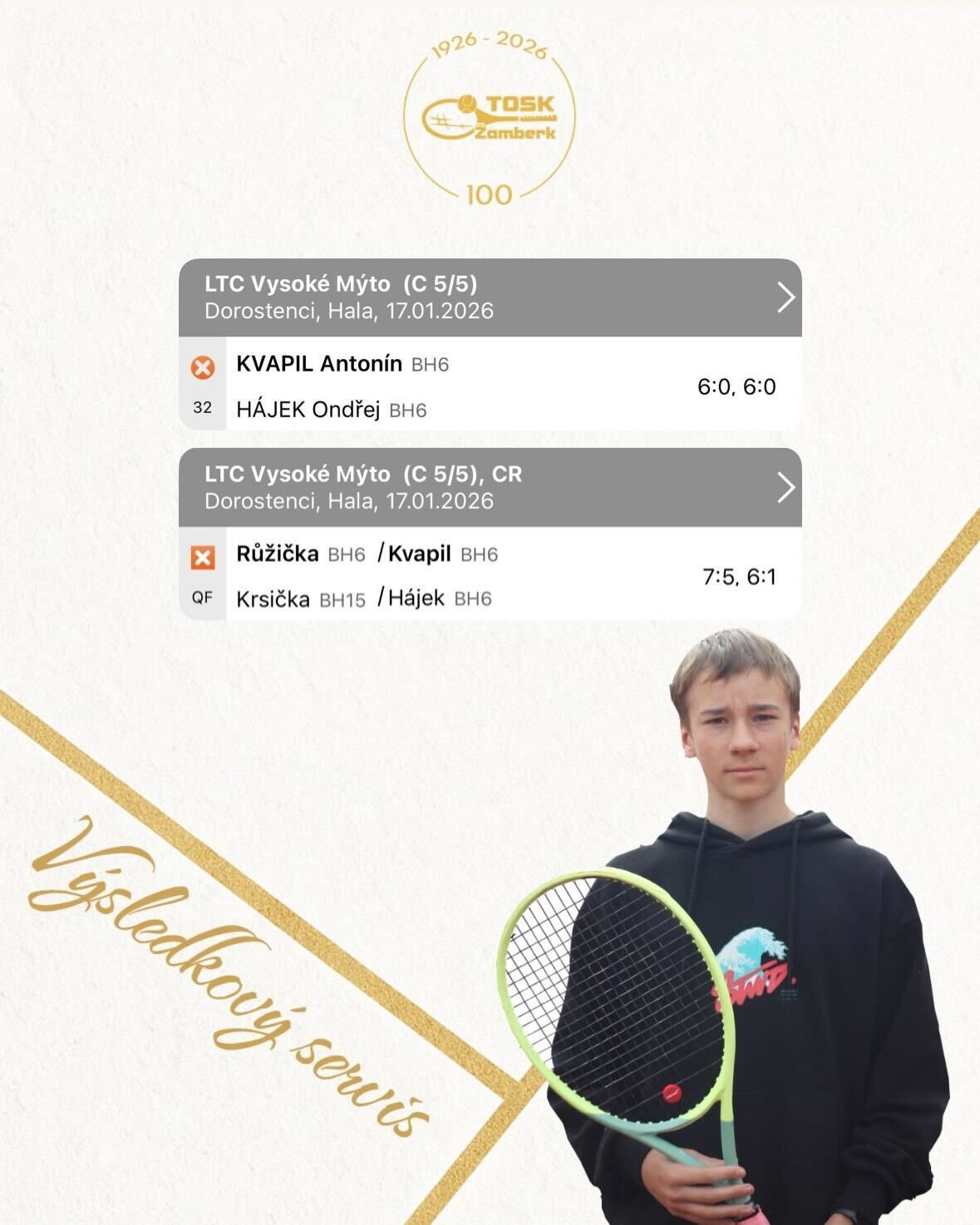 Na domácím turnaji starších žáků zasáhlo do bojů celkem pět hráčů TOSK Žamberk. Zajímavou a vyrovnanou bitvu kamarádů svedli Kristián Brkl a Jakub Jordán, ve které byl nakonec o něco šťastnější Kristián.
